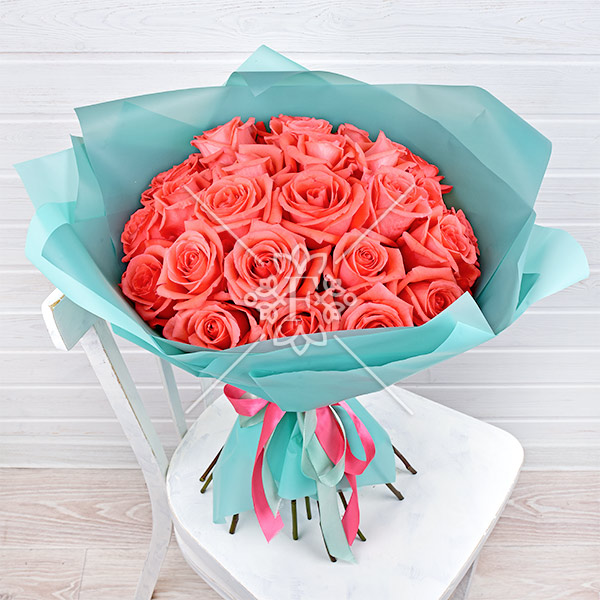 Коралловый риф – букет оранжевых роз